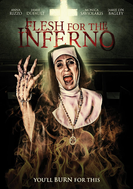 Director Richard Griffin always brings a ton of fun to his low budget horror movies, blending wit and camp with gruesome and bloody frights. From sci-fi and Lovecraftian horror on through to a straight-up slashers the man has toured through many of the beloved sub genres of terror with aplomb, and few have failed to make me giddy with delight. His latest movie available on home video to the masses is the supernatural nunspoitation entry Flesh for the Inferno (2015).
